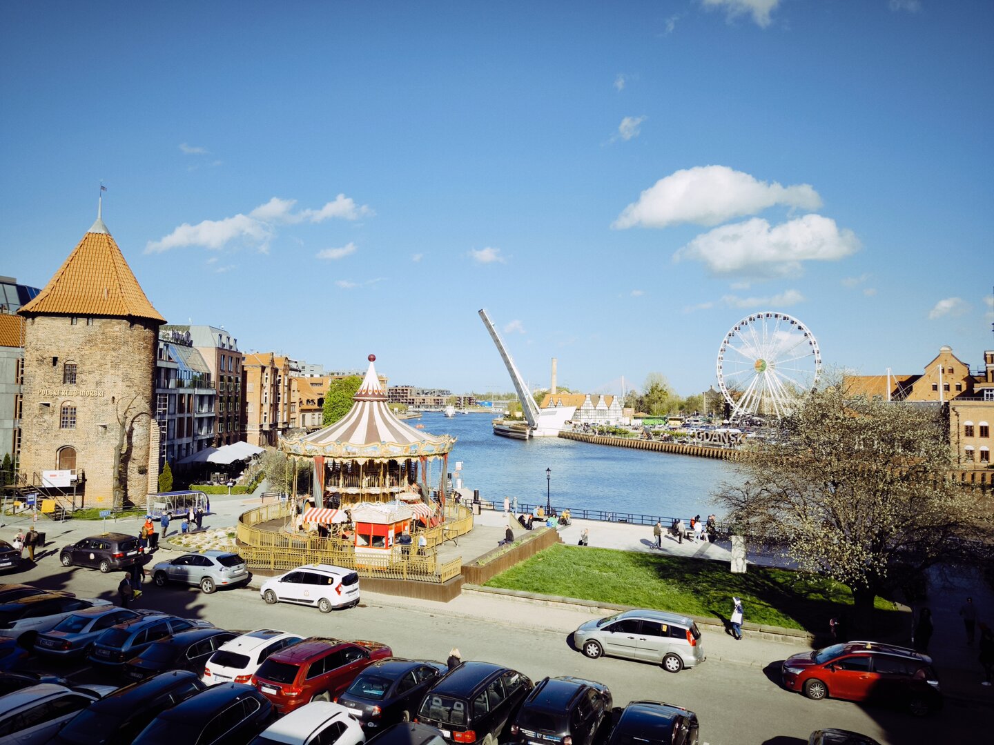 Przestronny i wygodny apartament z najpiękniejszym widokiem Starego Miasta na zakole Motławy i koło widokowe na Wyspie Ołowianka. Dwie sypialnie i salon oraz osobna kuchnia ze stołem jadalnym. W cenie prywatne miejsce parkingowe.